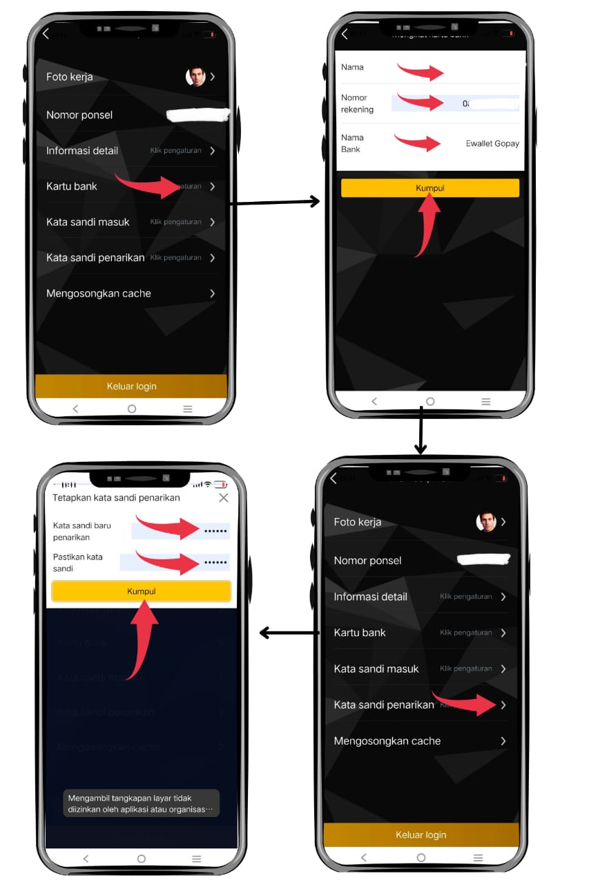 - Kata sandi penarikan berhasil disimpan dan siap digunakan