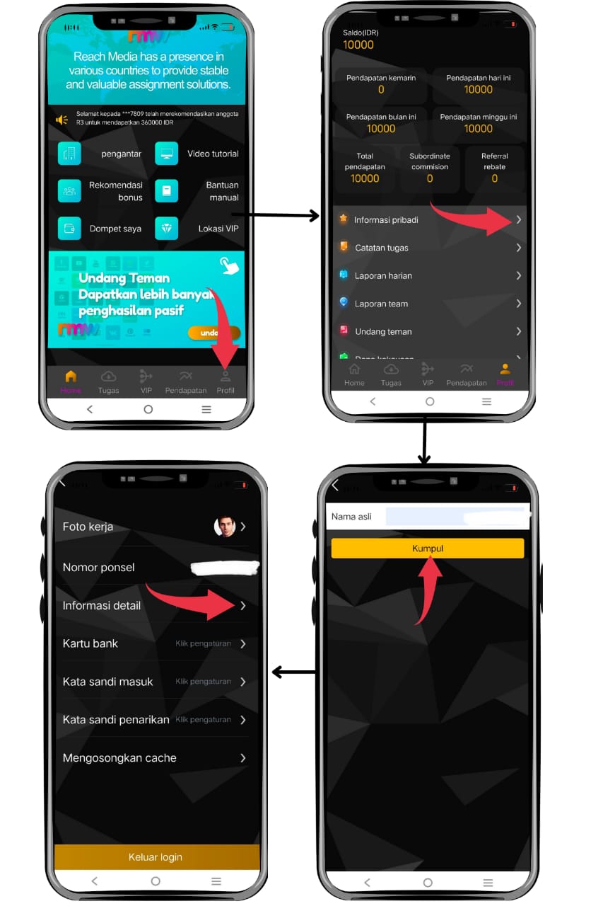 - Pada menu navigasi paling bawah tekan menu "Profil", anda akan di alhikan ke halaman Profil