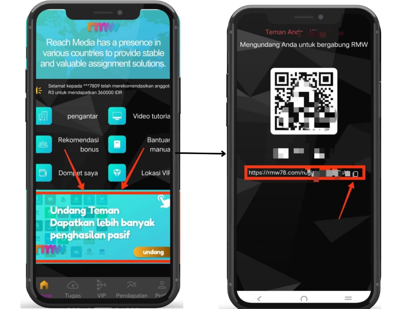 - Teman anda dapat memindai QR Code untuk mendaftar atau menggunakan tautan undangan