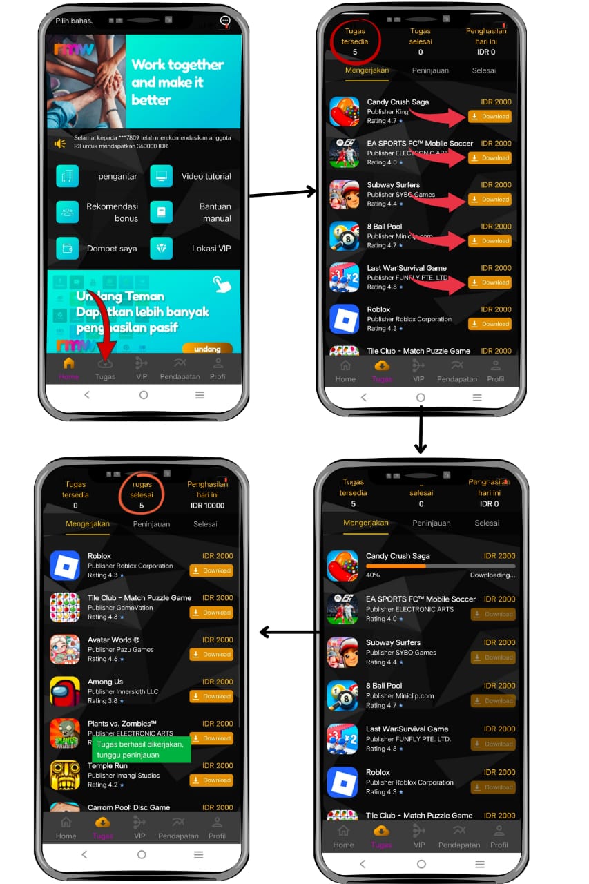 Jangan lupa untuk mengerjakan tugas harian anda setiap hari kecuali pada hari minggu, tugas tersedia berdasarkan tingkat keanggotaan anda, berikut adalah petunjuk mengerjakan tugas harian: